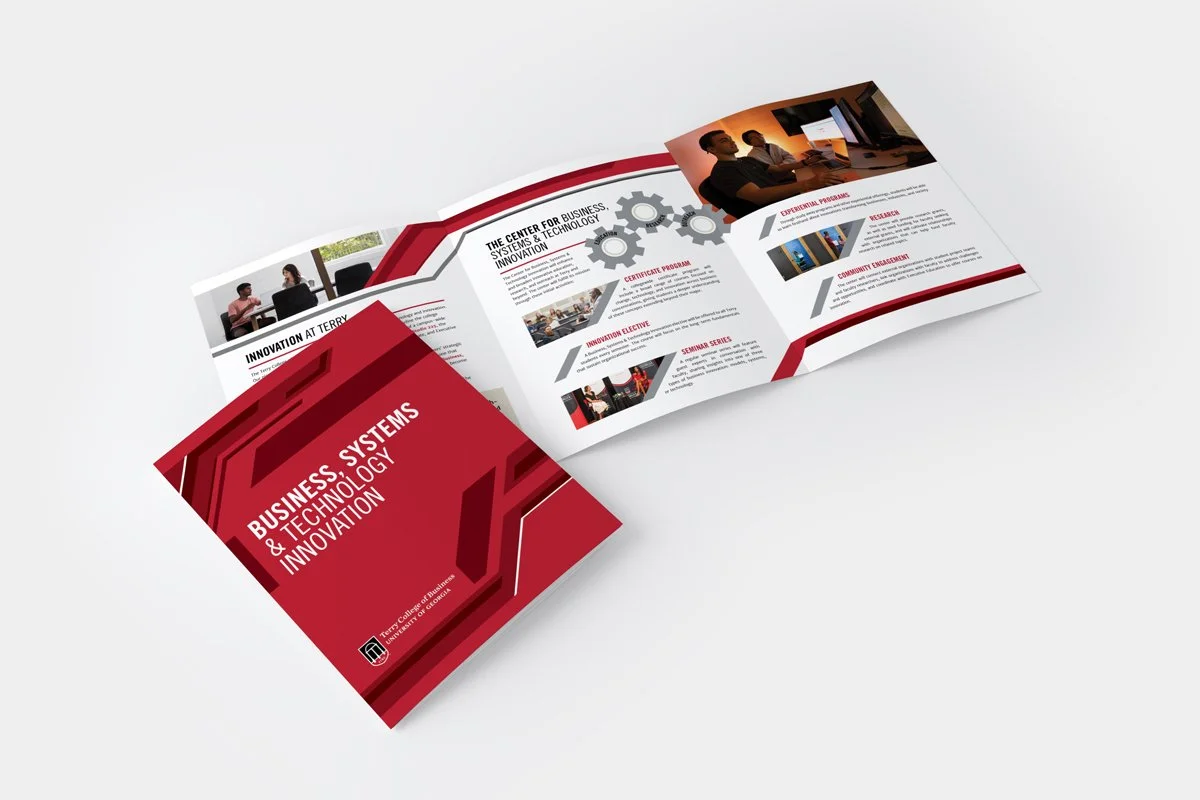 Design a brochure that details part of Dean Ayers’ strategic plan to establish innovation as a core value of the Terry College — one that transcends any single course or major. To do this, the college plans to create The Center for Business, Systems & Technology Innovation. With this new center, the college can prepare students to become transformative leaders while reinforcing our commitment to innovation college-wide.